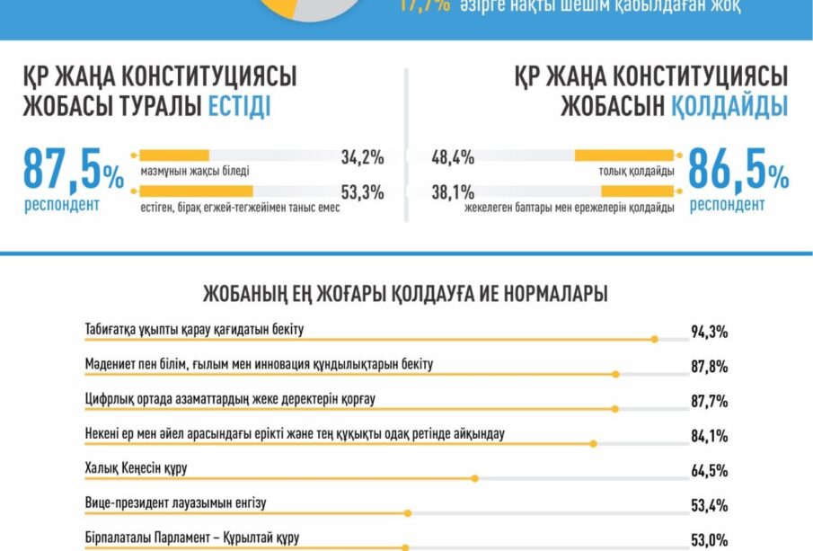 Респонденттердің 86,5%-ы Жаңа Конституция жобасын қолдайды